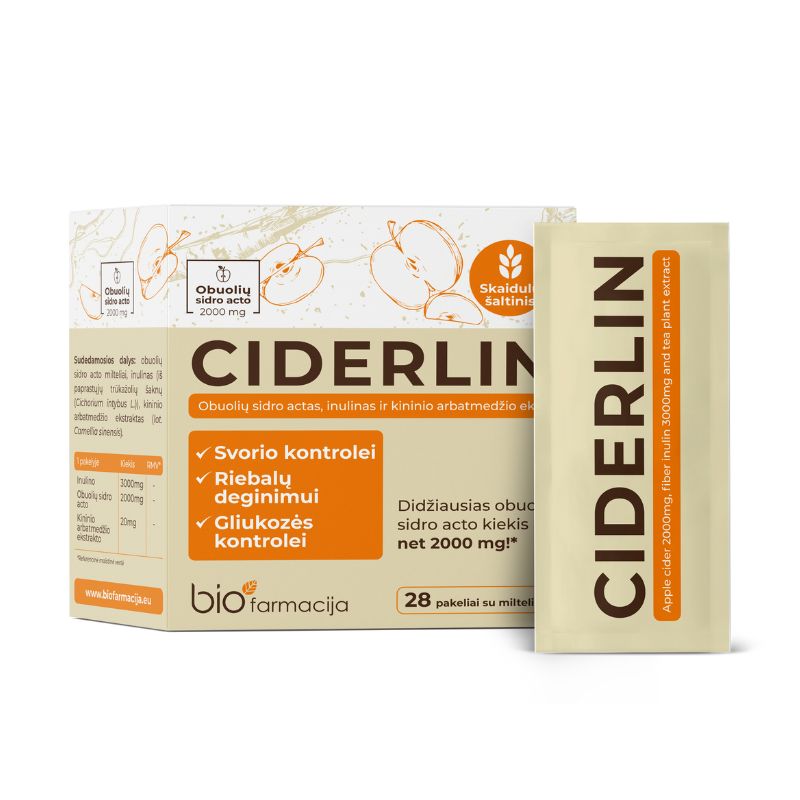 Looduslikku päritolu toode, mis sisaldab 2000 mg õunasiidriäädikat, 3000 mg inuliini ja Hiina teepõõsa (ld Camellia sinensis) ekstrakti, mis toetavad: